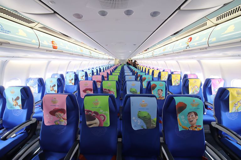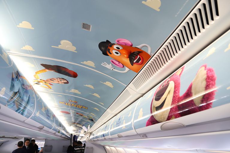 Of course, there’s a giant Buzz Lightyear on the exterior of the plane — to infinity, and beyond, people! Inside, there’s cute character theming over the seats and luggage bins, too.