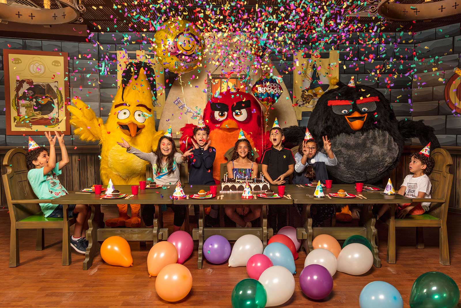 Angry Birds World features an abundance of food, merchandise, and event space while official Angry Birds merchandise section.