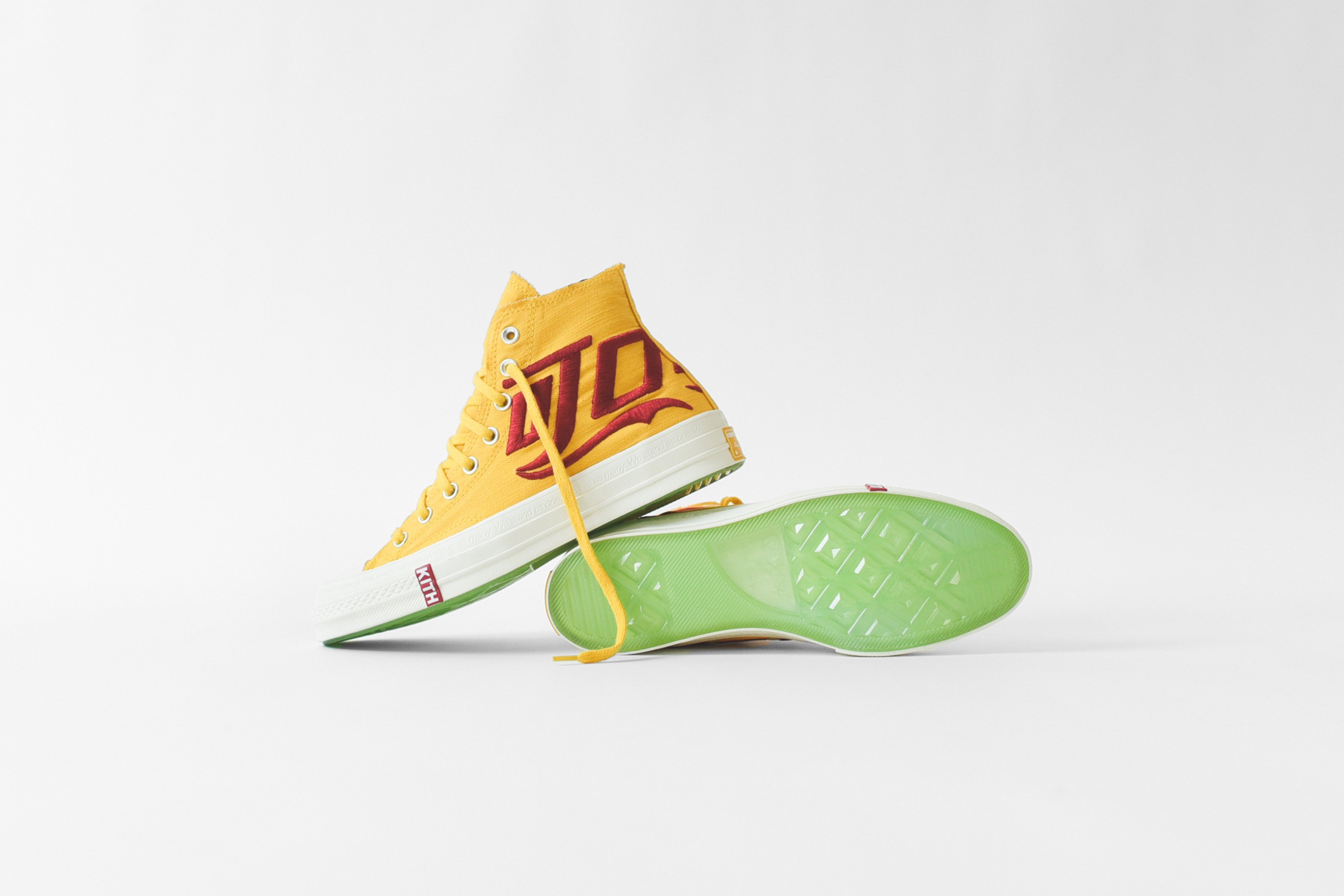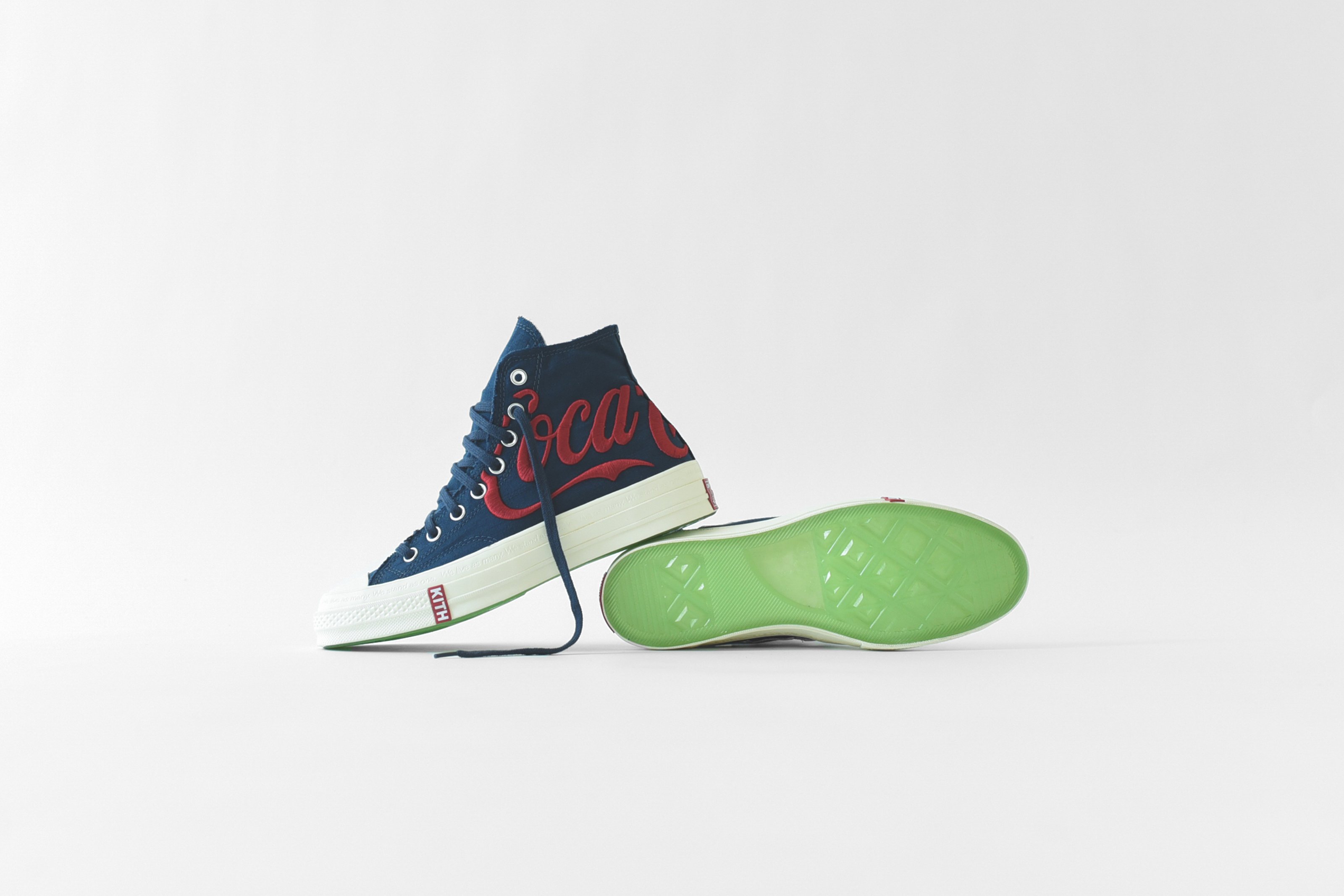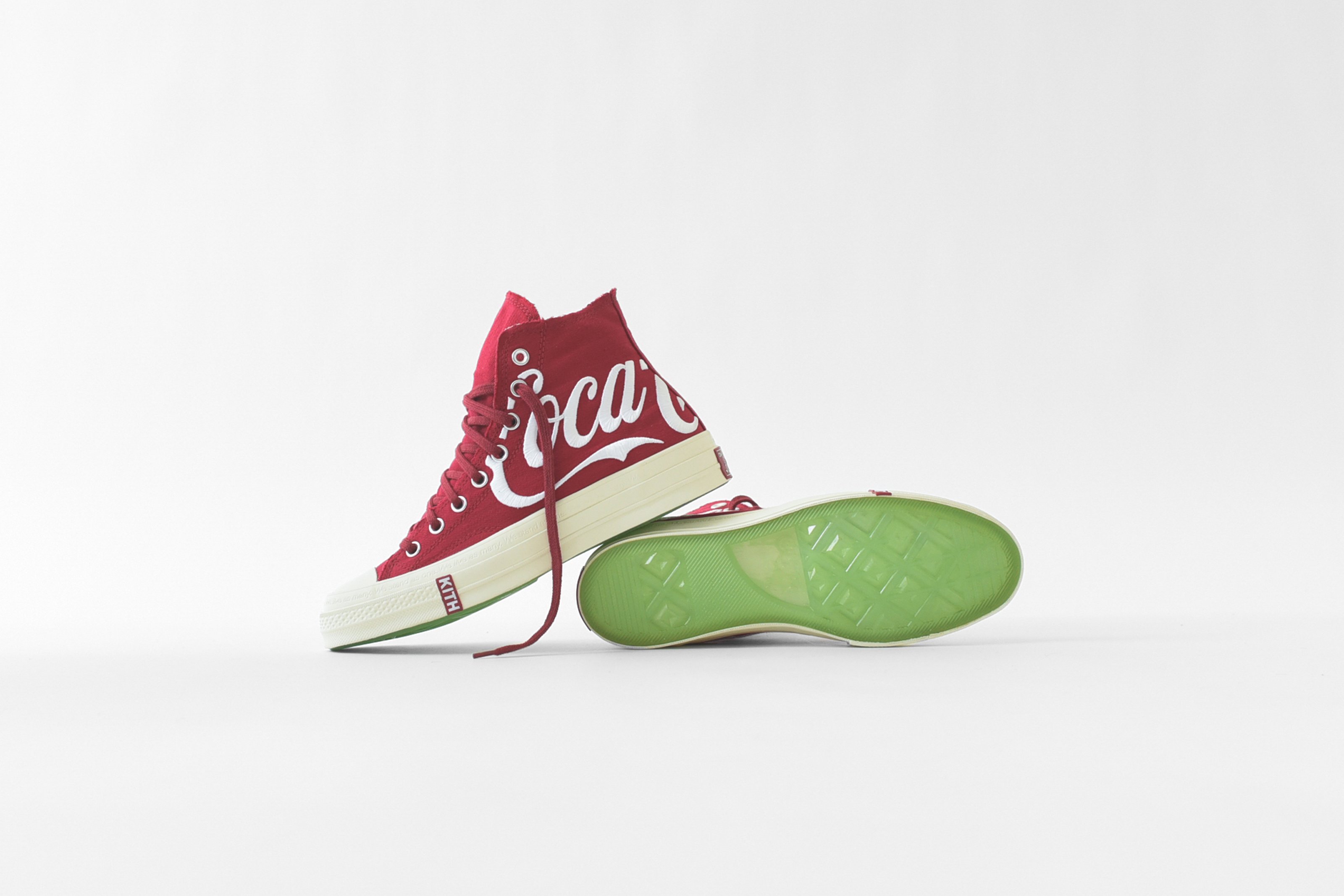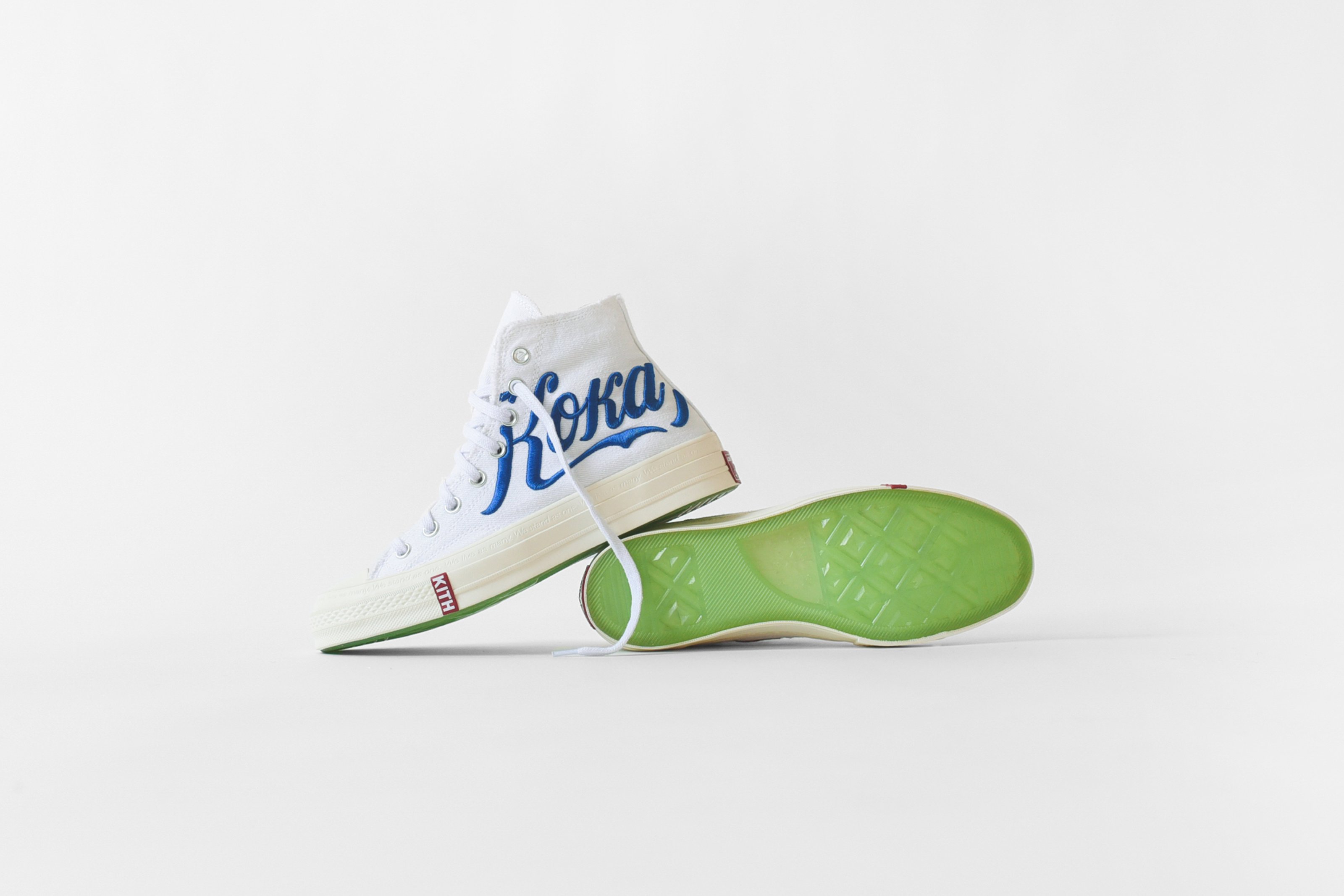 All four styles are outfitted with off-white vulcanized soles with translucent green outsoles that nod to the classic glass Coca-Cola bottles, as well as bottlecap-shaped Velcro patches on the medial sides. All the footwear would come in custom Kith x Coca-Cola x Converse packaging.