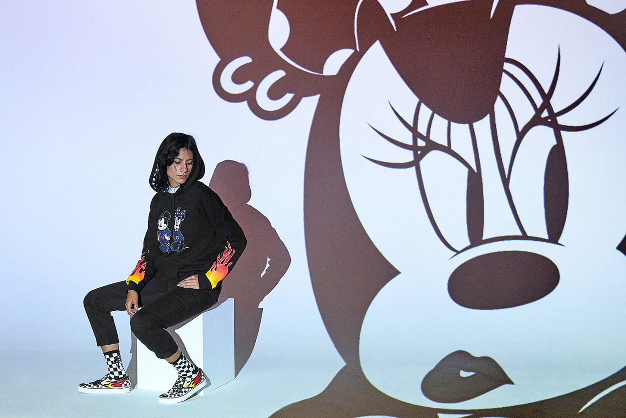 Key silhouettes in the collection include the Vans Sk8-Hi, which comes in a colorway dedicated to Mickey’s 1928 film debut and another design influenced by his role in Fantasia, as well as a Mousketeer-inspired Old-Skool and a flaming Slip-On. The apparel capsule includes sweatshirts, hoodies and colorful long sleeves featuring a number of Disney motifs.