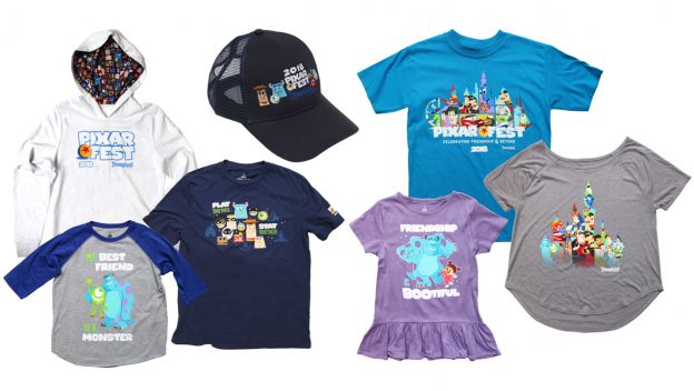 Some of the apparel products include pullover sweaters, t-shirts, baseball caps featuring colorful Pixar Fest character designs.