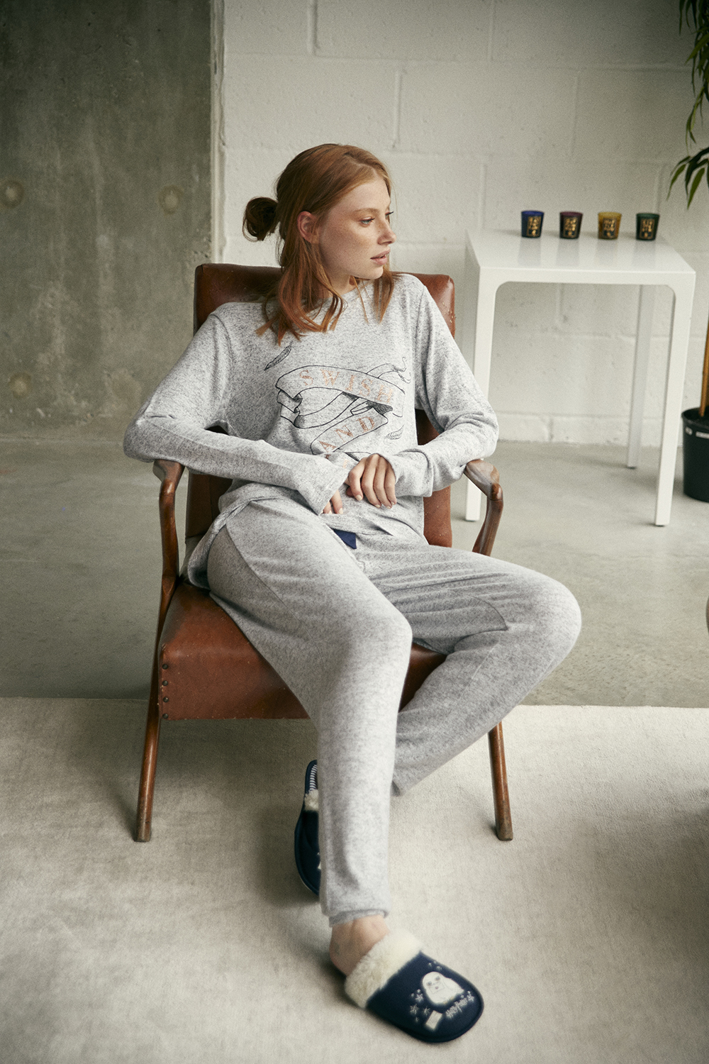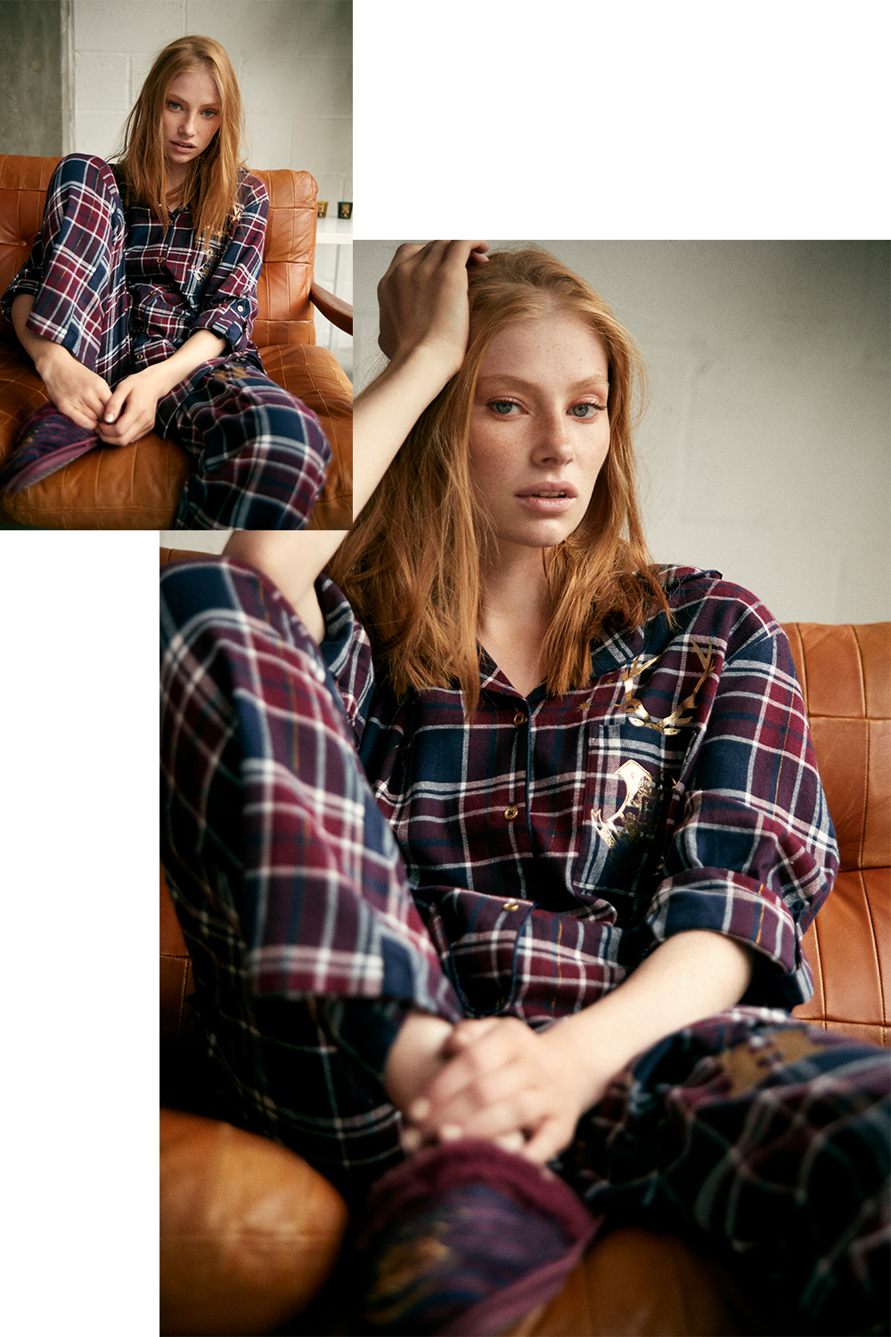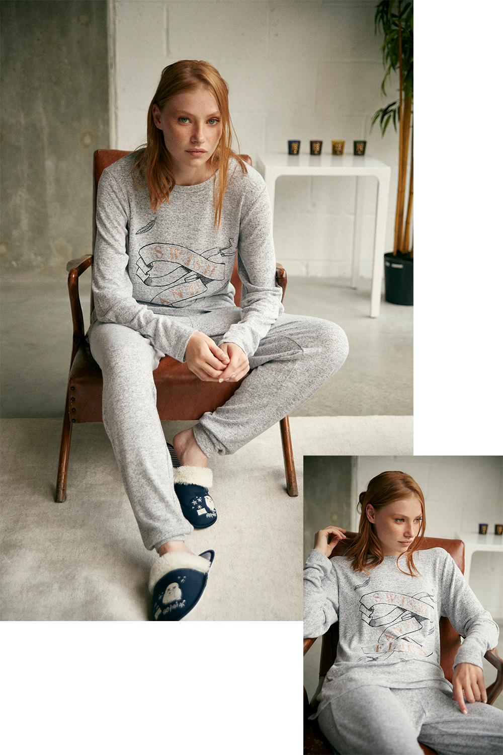 The collection includes striped pyjama tops and trousers, a navy pyjama set, a cami set, plus pyjama nightshirt and trousers for women, while children can pick up a cream pyjama set, plus slippers and onesies (in burgundy and grey).