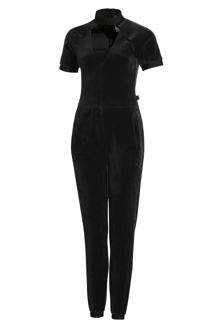 The collection is inspired by strong women throughout history and includes athleisurewear in shades of black, white and gray. The collection also comprises of graphic jackets, faux leather accessories, mesh tops, and a luxe velvet catsuit.