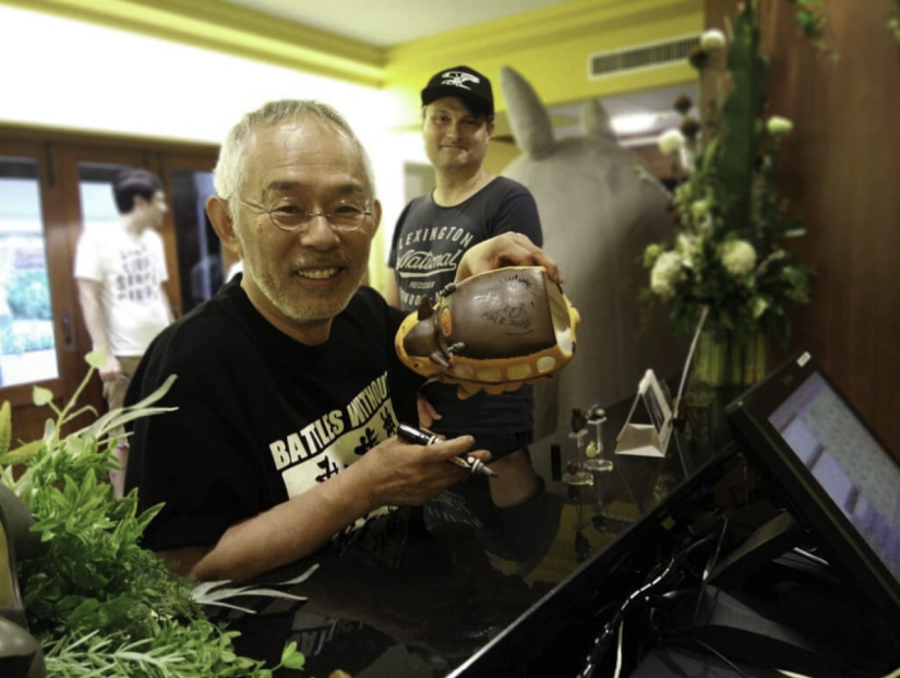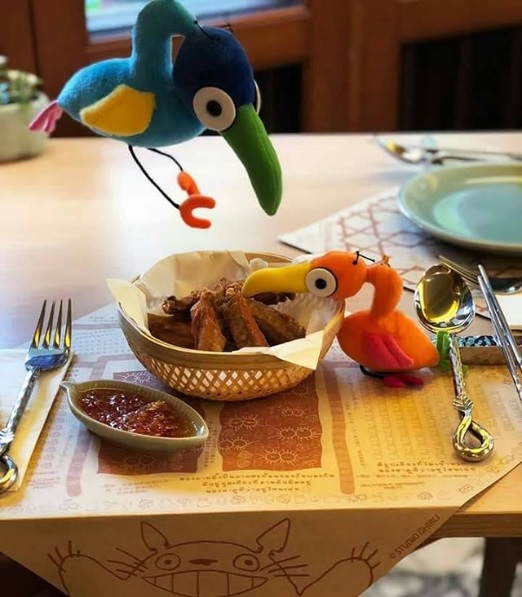 Studio Ghibli, co-founder Toshio Suzuki has helped in developing and curating the concept for the restaurant, and personally designed its sign. He also designed two exclusive new Studio Ghibli characters for the restaurant, Colko and Peeko.
